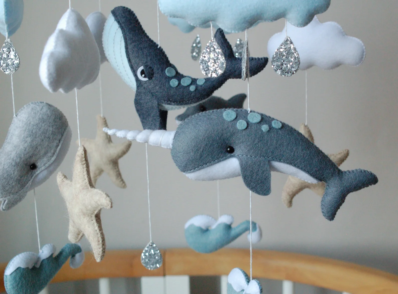 فكرة هدية حفل استقبال المولود الجديد على شكل حوت دولفين بحر أمواج محيط نجم البحر حوت معلق لعبة قطيفة لحضانة الأطفال مصنوعة من اللباد مع قوس قزح | |