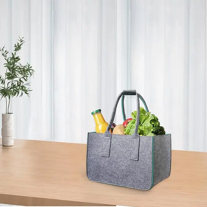 شراء بالجملة بسعر رخيص، سلة تسوق بمقبض طويل وجيب داخلي متعدد الاستخدامات وحقيبة تخزين ألعاب من اللباد