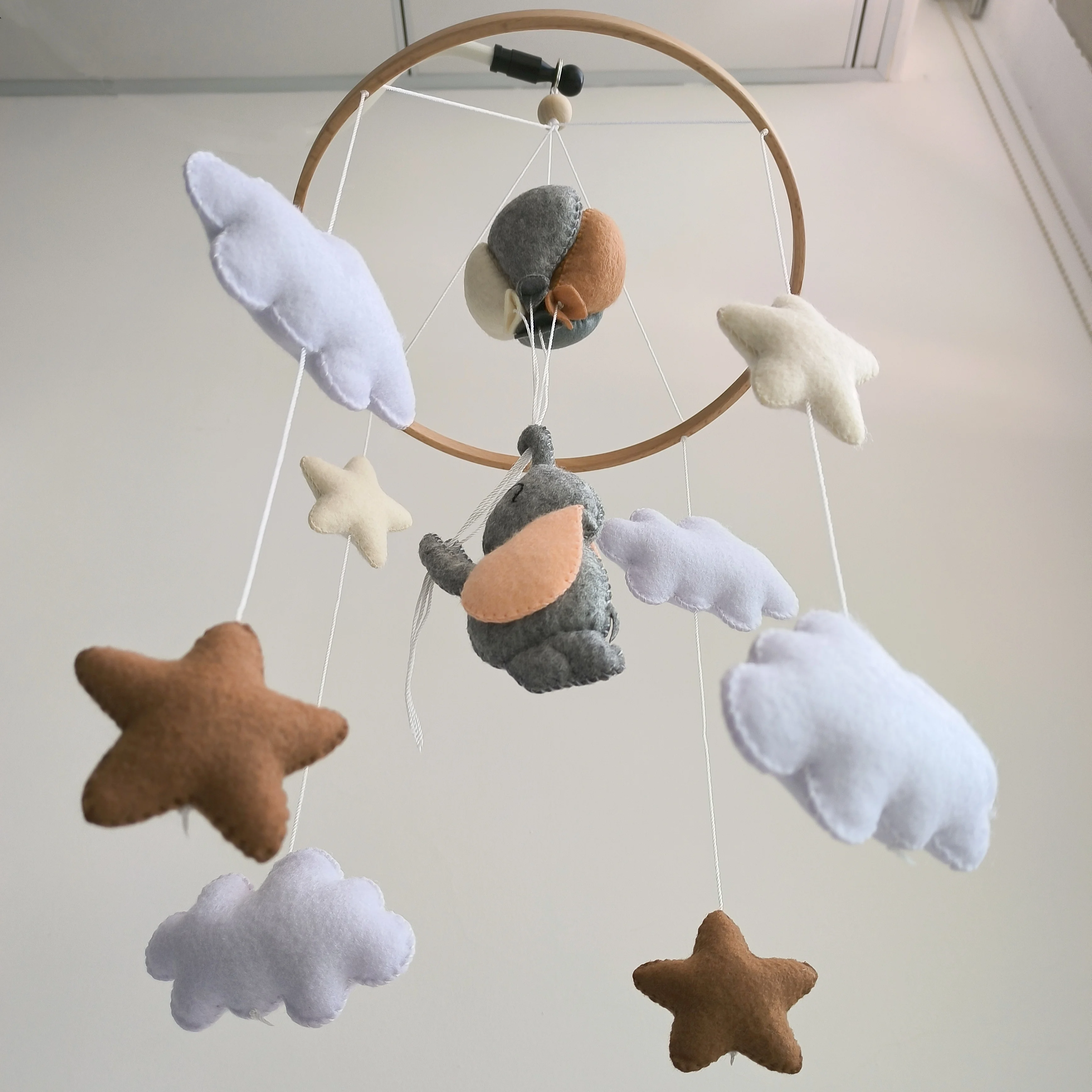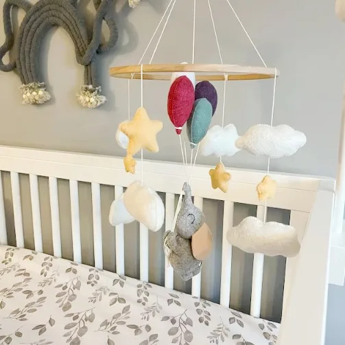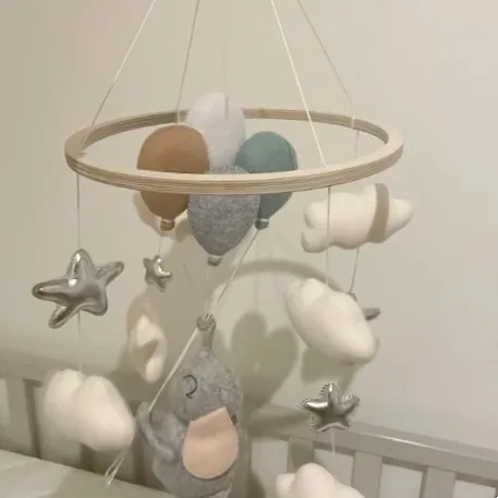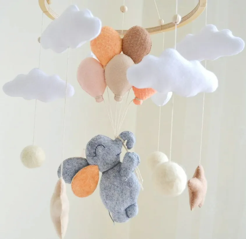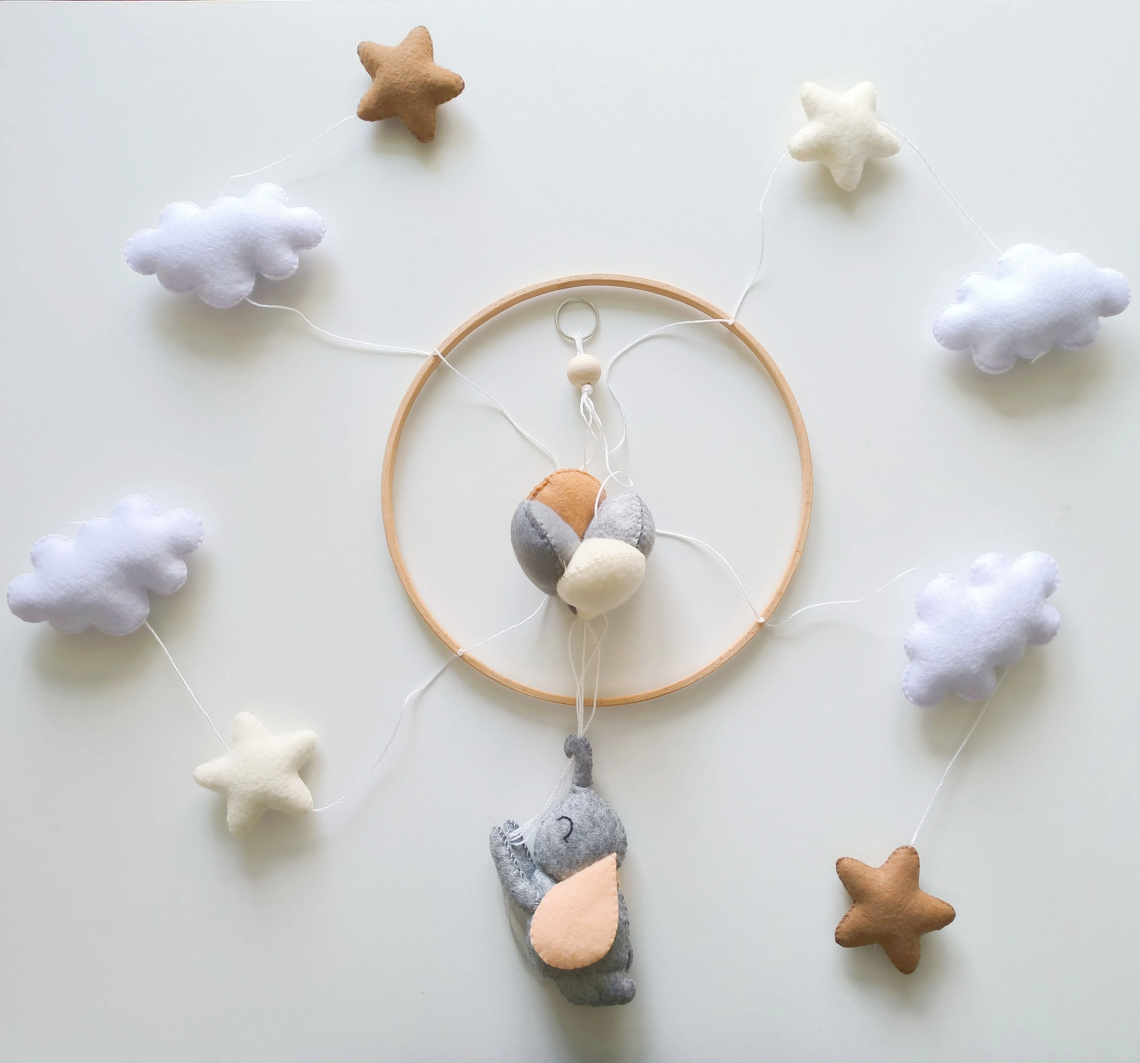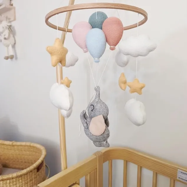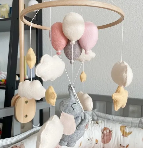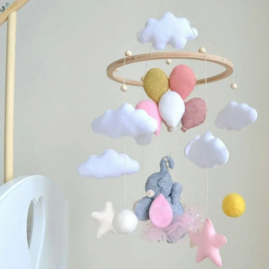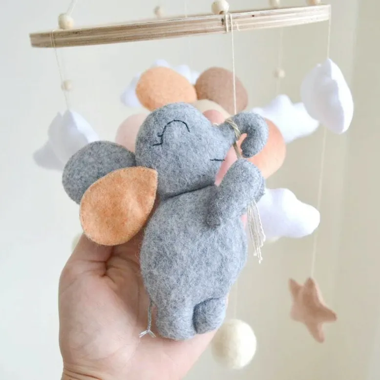زينة غرفة الأطفال المتحركة المصنوعة حسب الطلب في الصين مصنوعة من كرات محايدة باللونين الوردي والرمادي وديكور الباستيل على شكل فيل