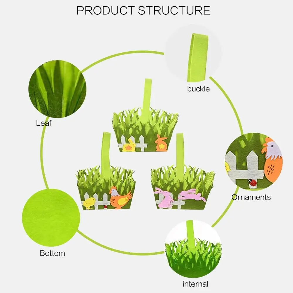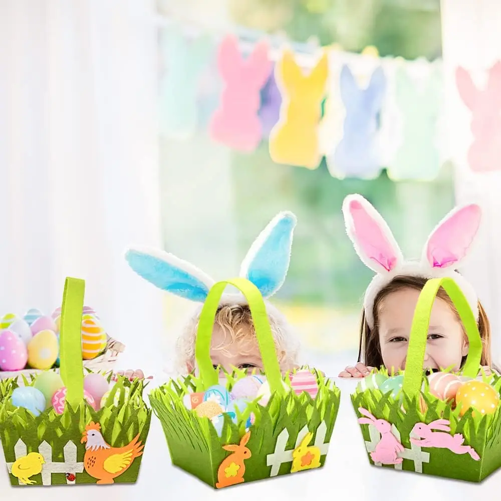 غرض | حقيبة هدايا على شكل أرنب حلوى بقرة من اللباد، سلال عيد الفصح للأطفال |
