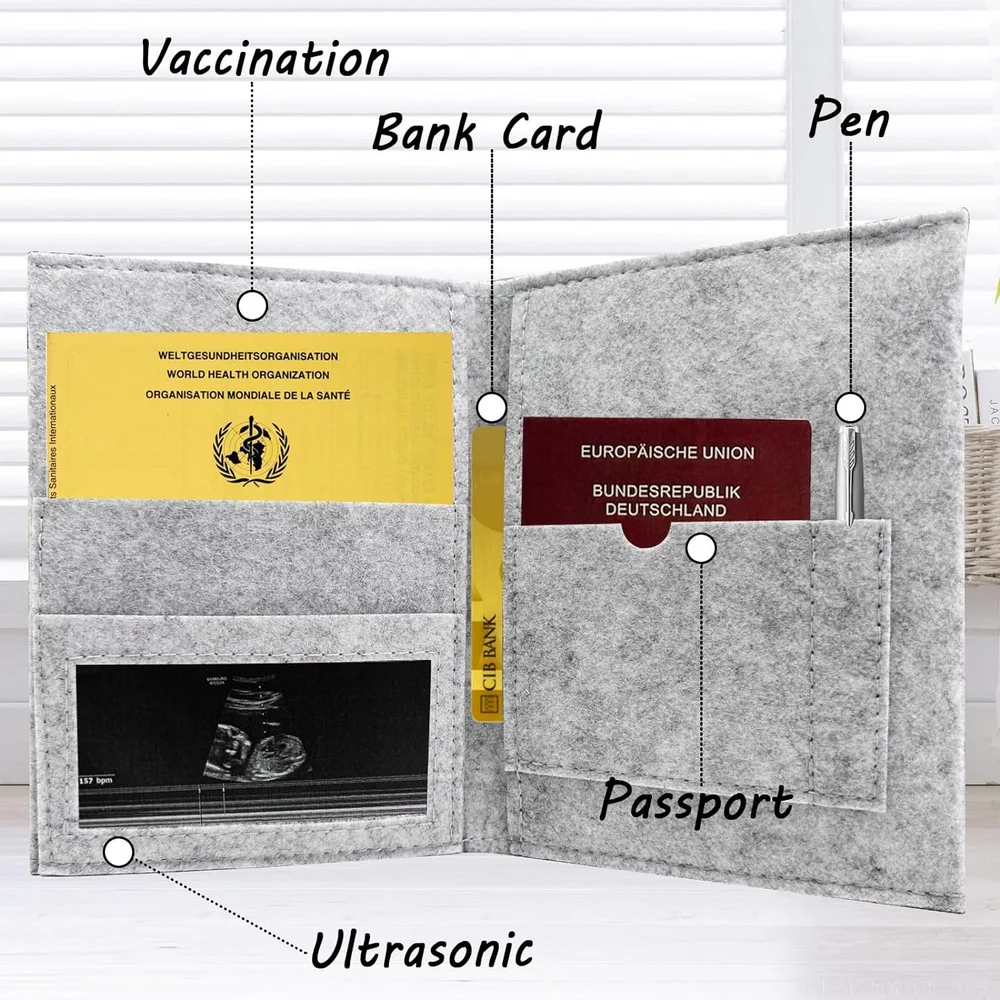 غرض | غطاء حماية لبطاقة الأمومة مصنوع يدويًا من اللباد الألماني للأم الحامل وبطاقة تأمين صورة الموجات فوق الصوتية وبطاقة التطعيم | ||||||