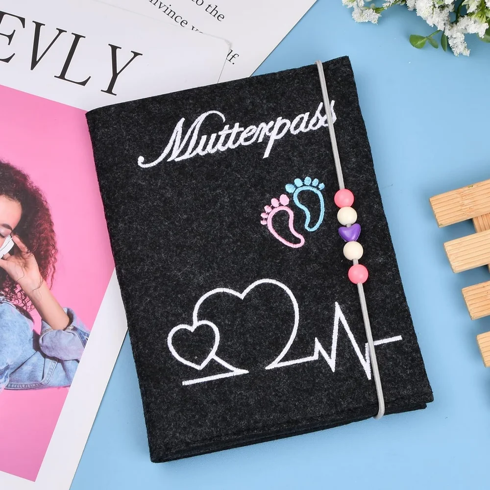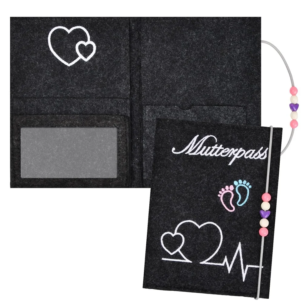 غطاء حماية للحوامل على الطراز الألماني الفاخر مصنوع من اللباد الناعم المنفوش من ماركة Mutterpass mamapass بتصميم على شكل قلب وأقدام الأطفال