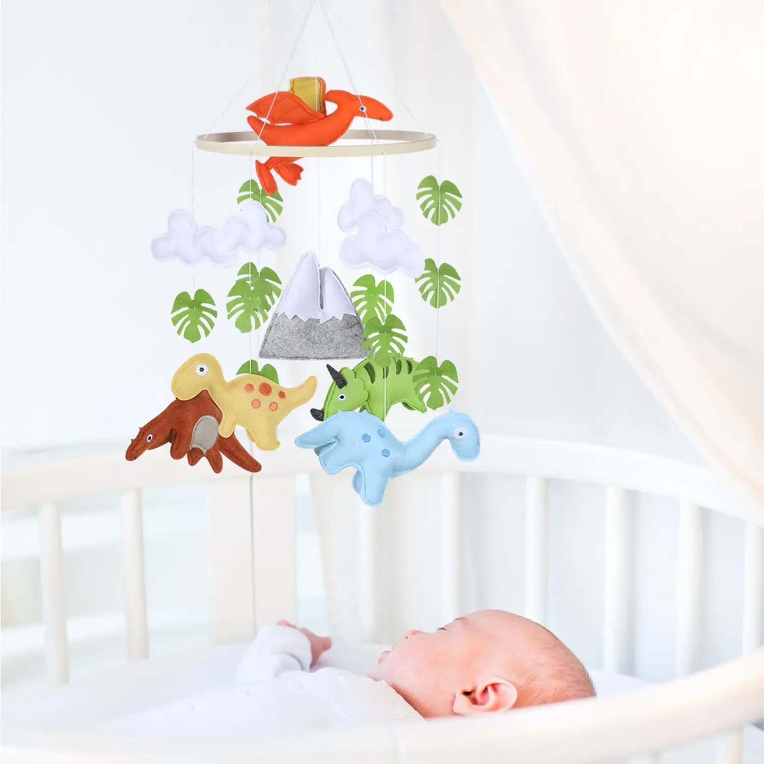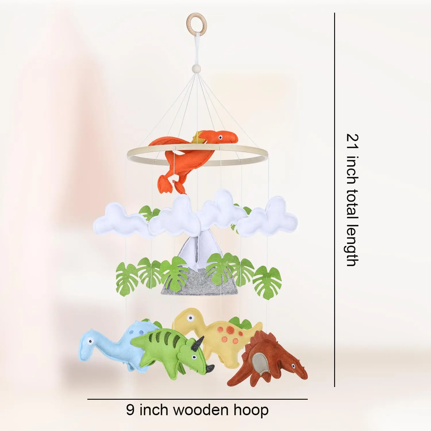 جرس سرير موسيقي محايد للجنسين للأولاد والبنات على شكل ديناصور ناعم من اللباد لتزيين غرفة الأطفال
