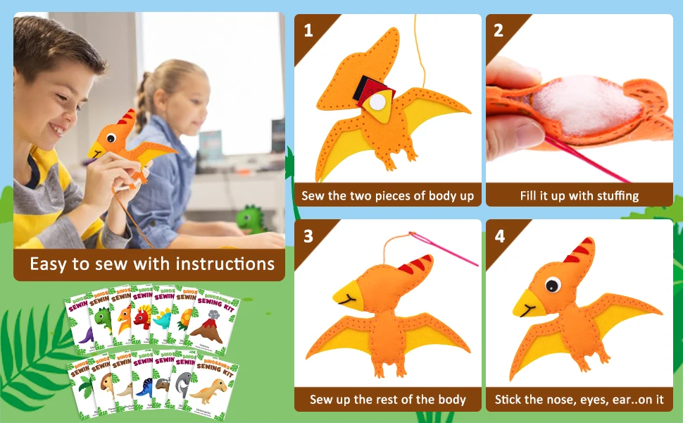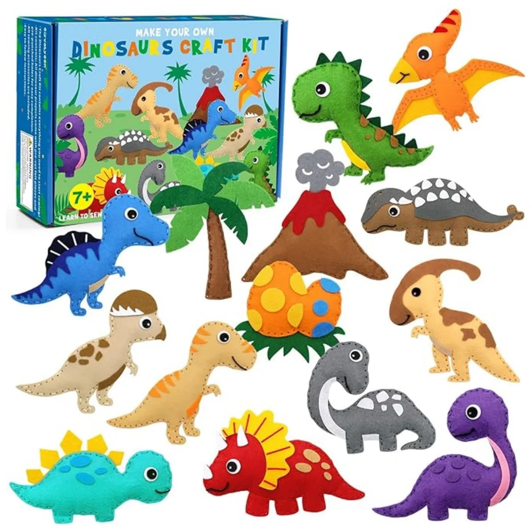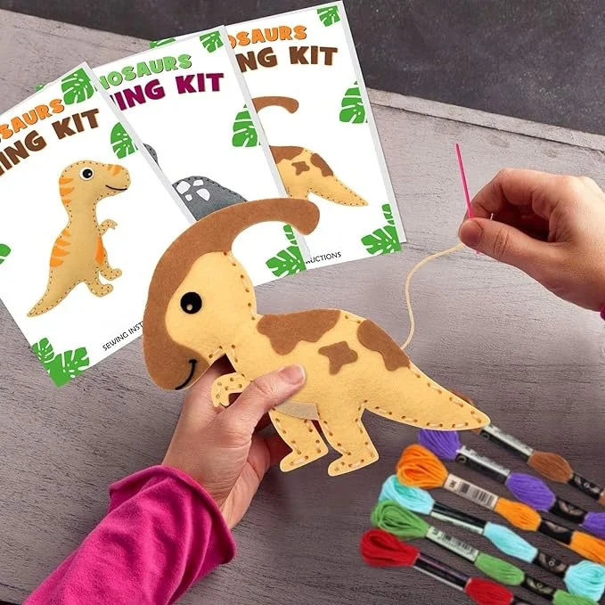 مجموعة أدوات خياطة الديناصورات الأكثر مبيعًا للأطفال في الأسواق الصينية عبر الإنترنت مجموعة زينة من اللباد المحشوة على شكل حيوانات