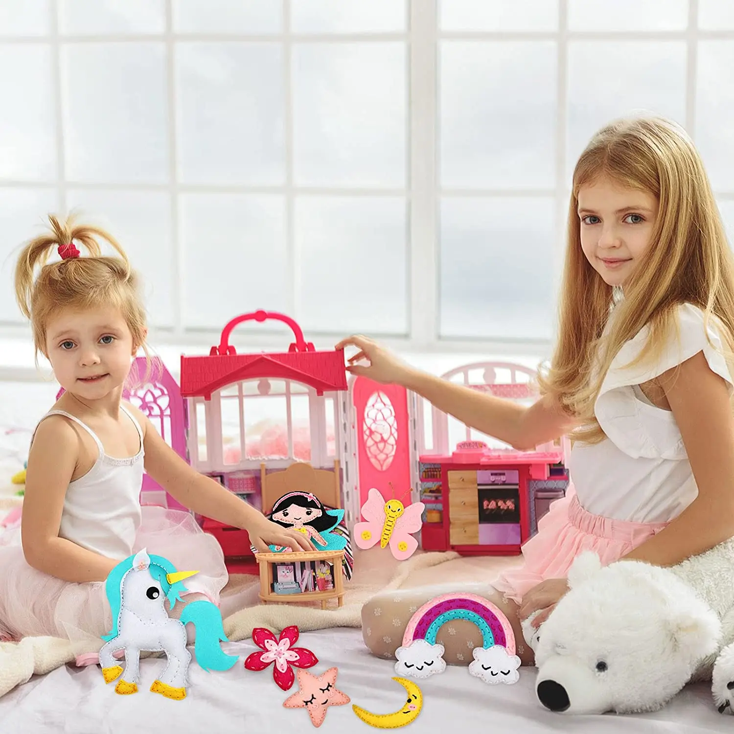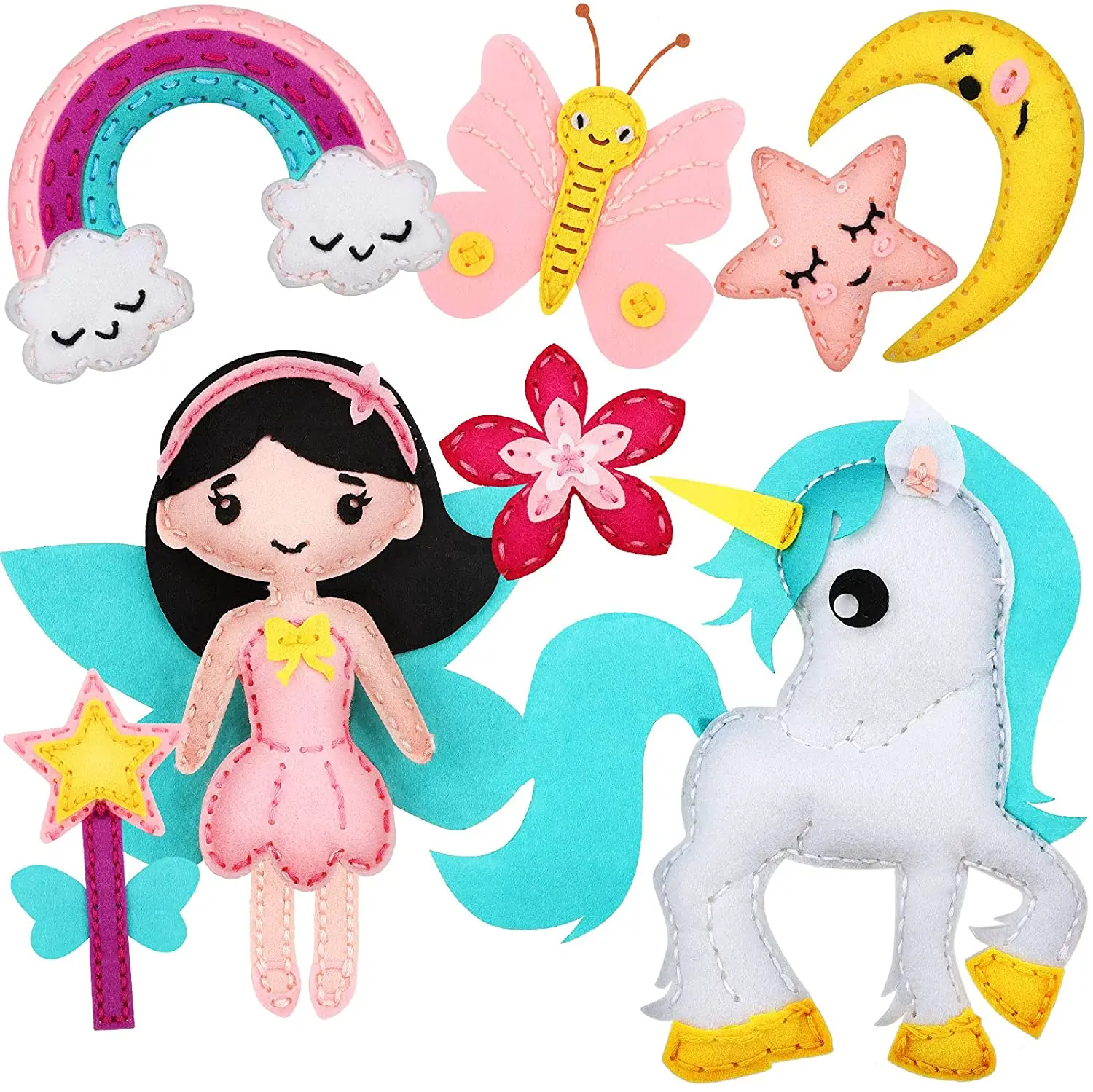 مجموعة أدوات خياطة على شكل فراشة قوس قزح ويونيكورن للأطفال من سن 3 سنوات فما فوق، مجموعة أدوات خياطة ممتعة تعليمية مع أشكال مقطوعة مسبقًا من اللباد