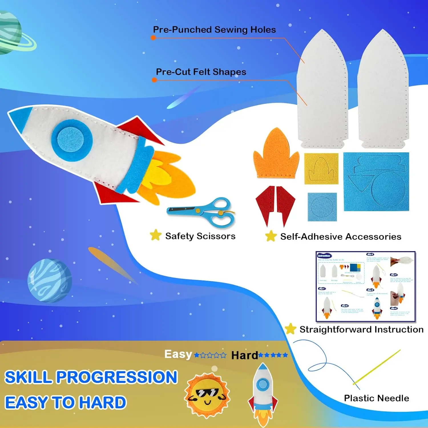 مجموعة أدوات الخياطة الفضائية، صندوق مجموعة أدوات استكشاف النظام الشمسي لمرحلة ما قبل المدرسة، هدايا تعليمية أخرى فريدة من نوعها، مجموعة أدوات حرفية فنية، صندوق مجموعة أدوات خياطة الفضاء للأولاد والبنات