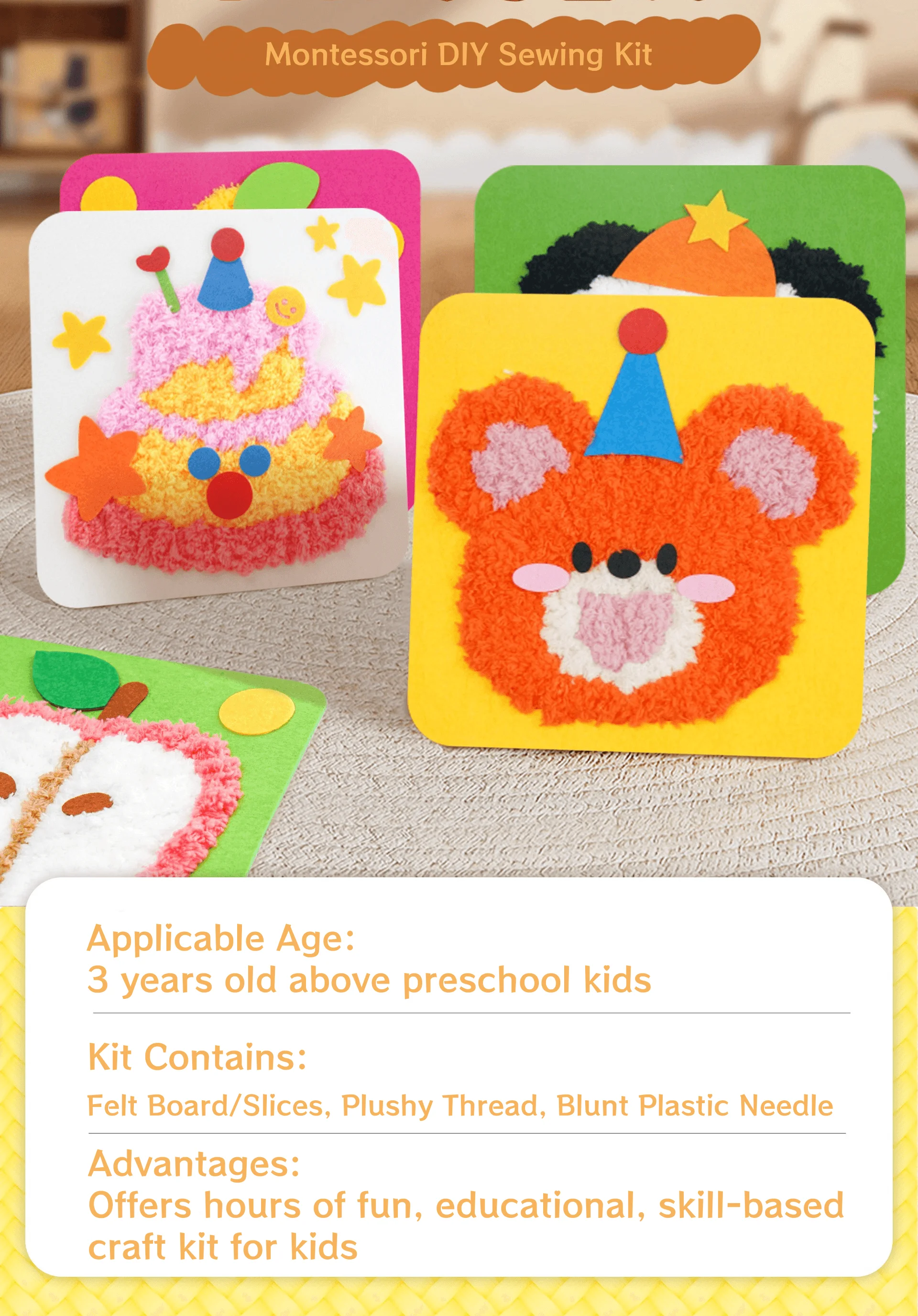مجموعة أدوات تعليمية جديدة من مونتيسوري للتطريز والخياطة للأطفال، مجموعة أدوات حرفية هدية للبنات والأولاد، حقيبة مواد يدوية محشوة