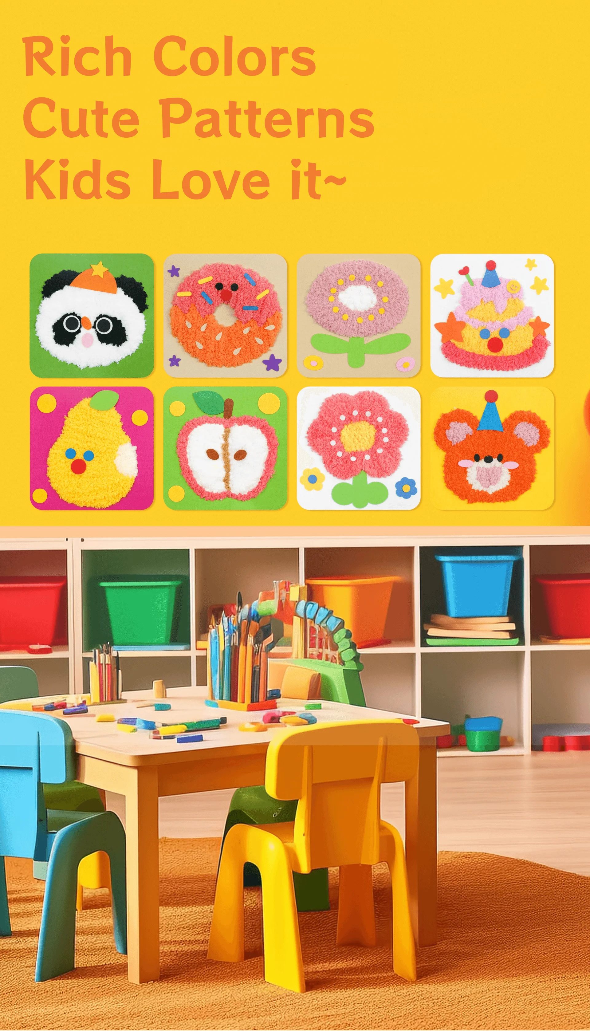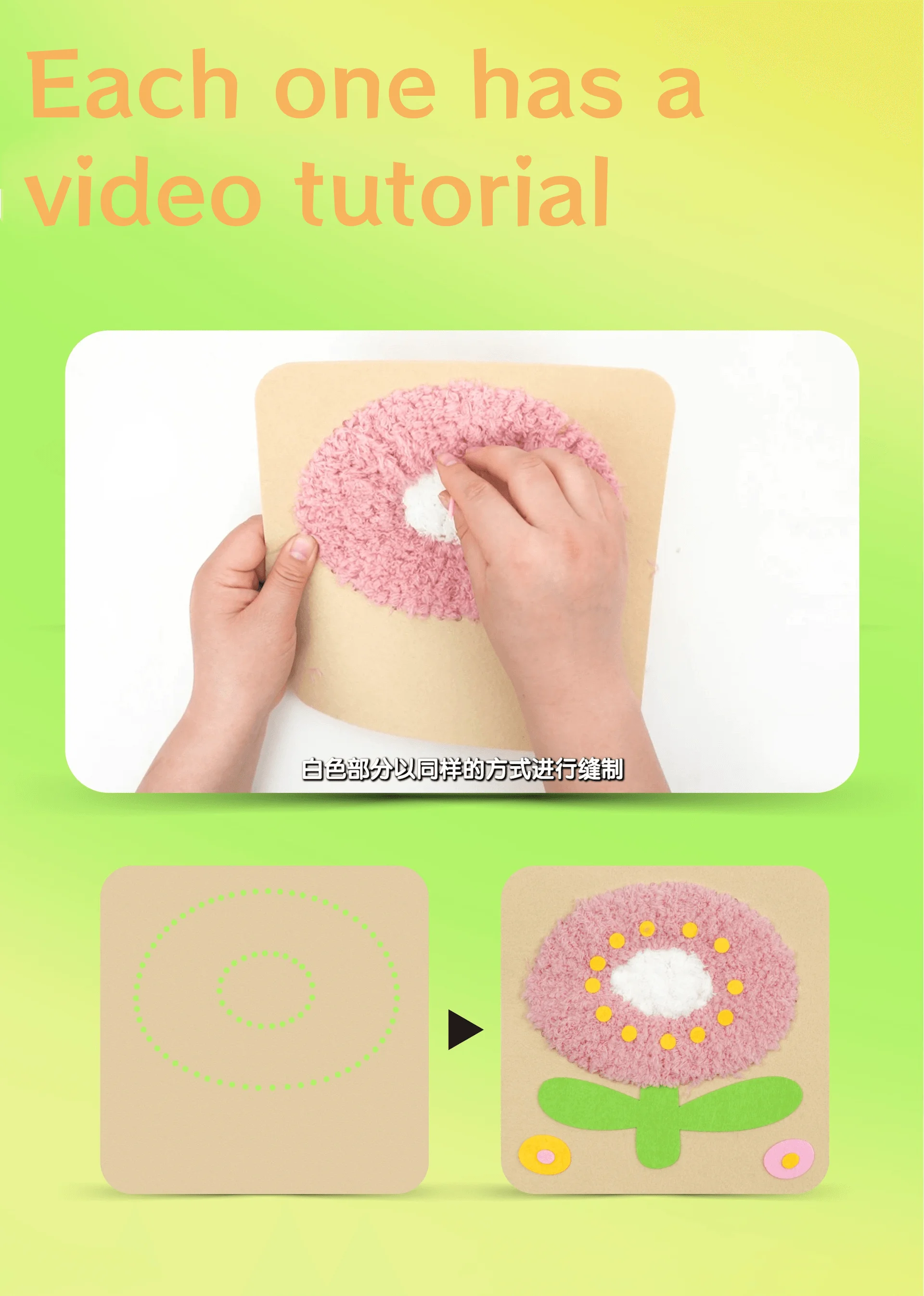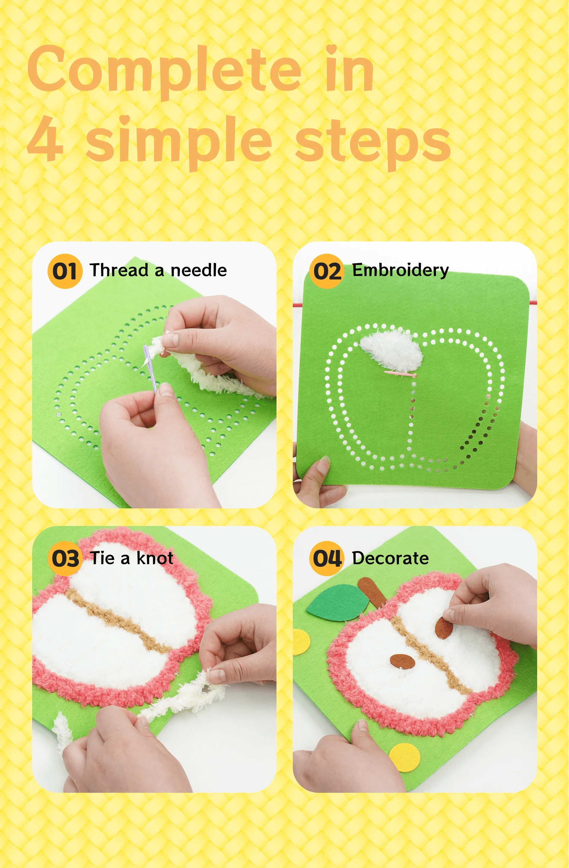 لوح/شرائح من اللباد؛ إبرة بلاستيكية؛ خيط مخملي؛ غراء