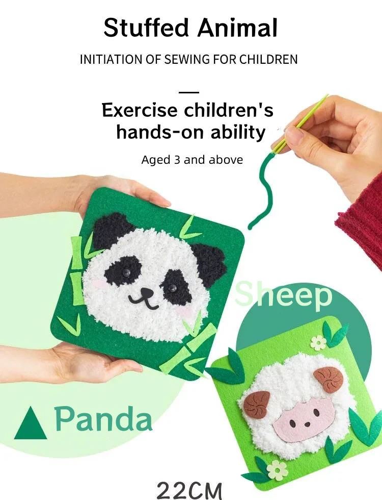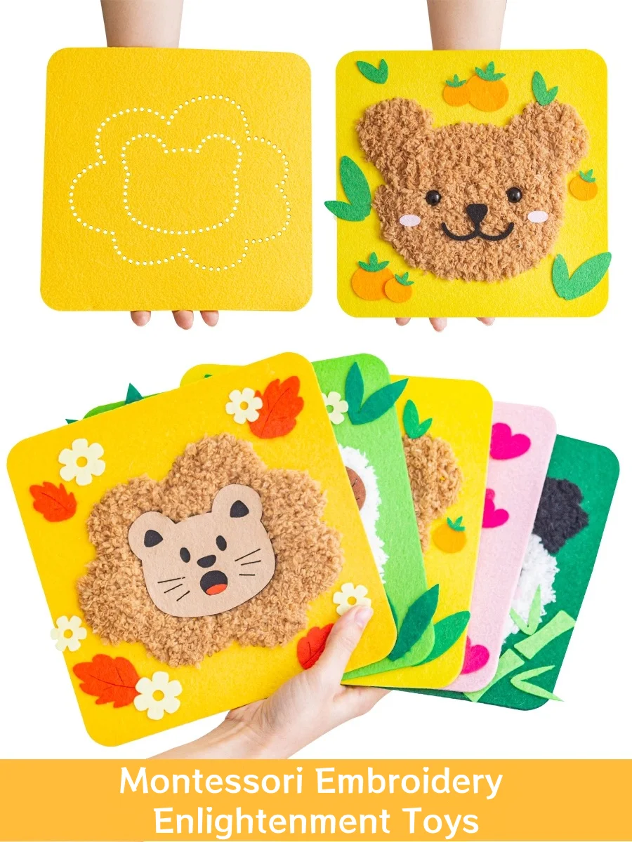 مجموعة خياطة وتطريز من CE Montessori للمبتدئين، مجموعة حرفية للأطفال، هدية للبنات والأولاد، حقيبة مواد مخصصة على شكل حيوانات محشوة