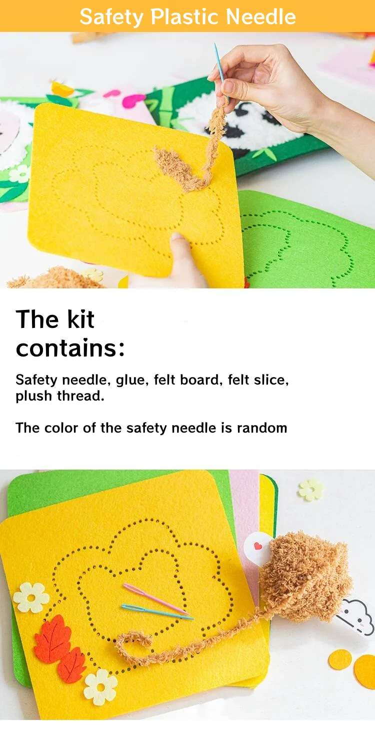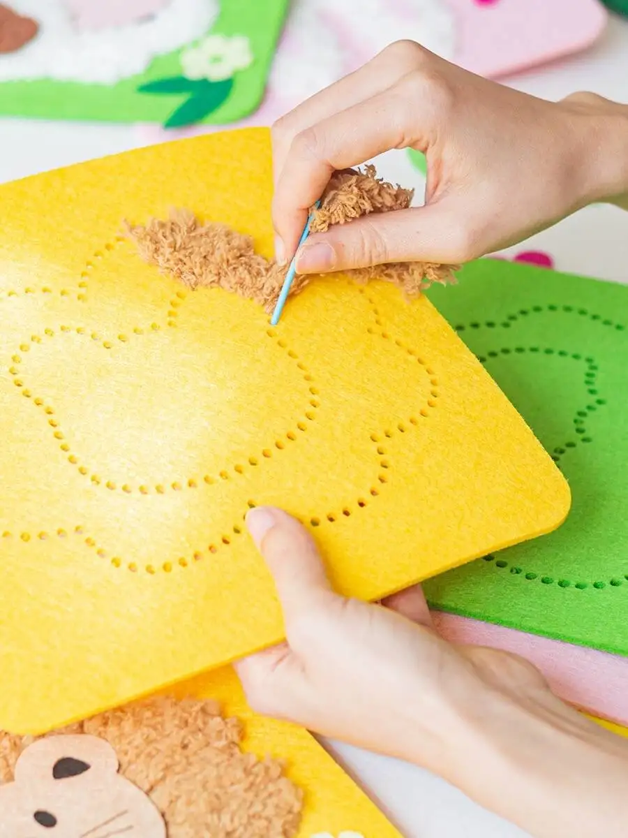 لوح/شرائح من اللباد؛ إبرة بلاستيكية؛ خيط مخملي؛ غراء