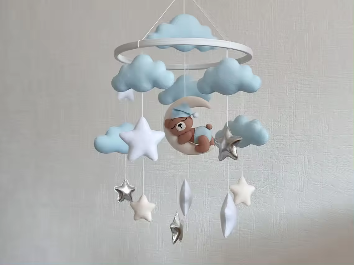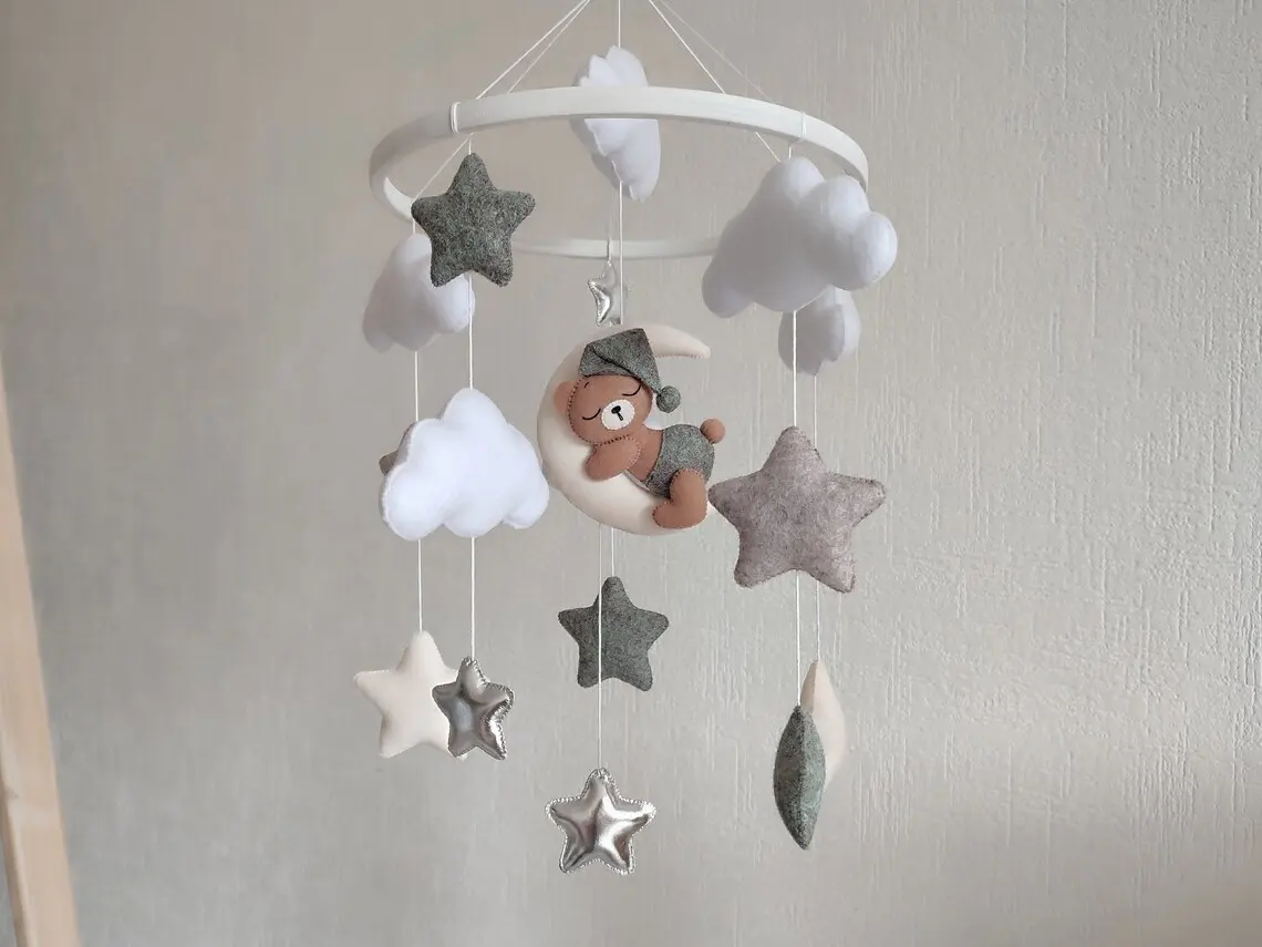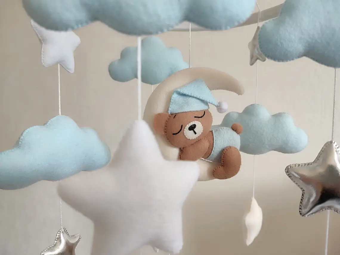 منتجات أطفال جديدة فاخرة ديكور معلق ألعاب مصنوعة يدويًا حضانة أطفال موسيقية فتاة من اللباد دب محشو ألعاب أطفال متحركة