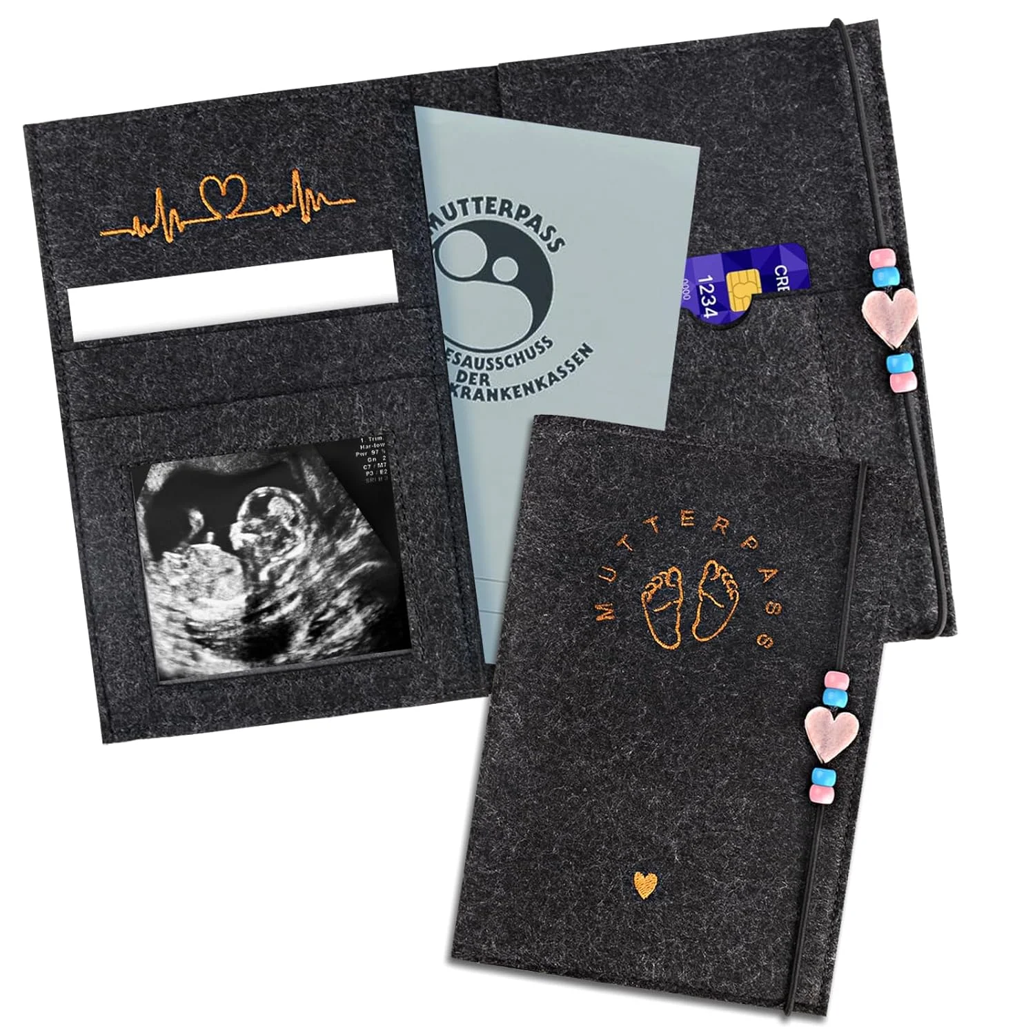 ميزة | حامل جواز سفر مع صورة بالموجات فوق الصوتية وبطاقة تأمين وشهادة تطعيم. أفضل هدية للأم الحامل! |